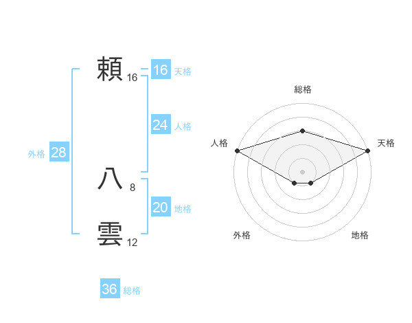 頼 八雲さんの天格は16画の5点!
