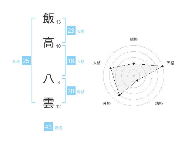飯高 八雲さんの天格は23画の5点!