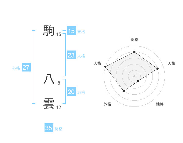 駒 八雲さんの地格は20画の1点!