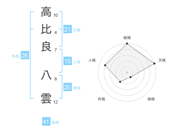 高比良 八雲さんの天格は21画の5点!