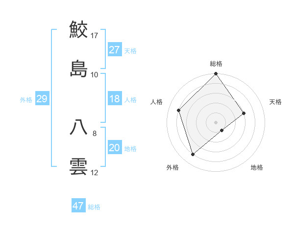 鮫島 八雲さんの総格は47画の5点!