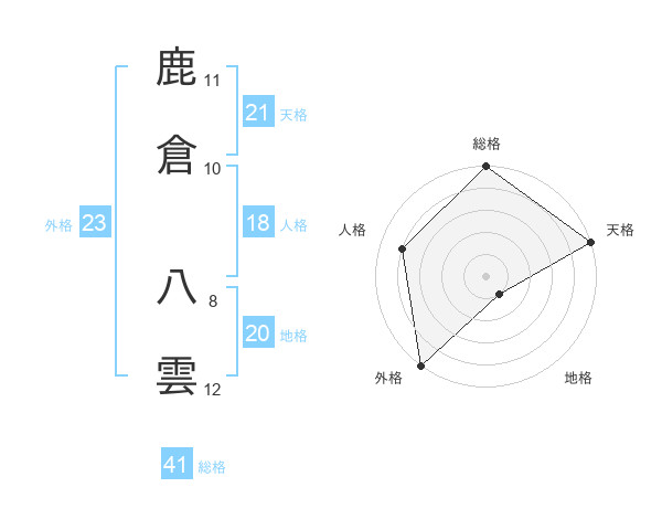 鹿倉 八雲さんを姓名の画数から五運を鑑定