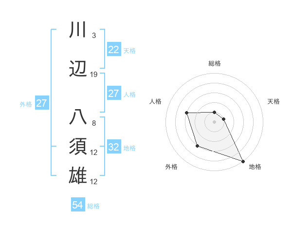 川辺 八須雄さんを姓名の画数から五運を鑑定