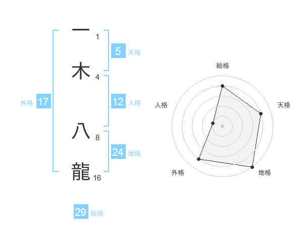 一木 八龍さんの総格は29画の4点!