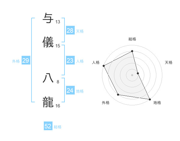 与儀 八龍さんの外格は29画の4点!