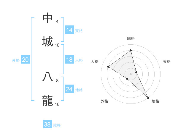中城 八龍さんの総格は38画の4点!