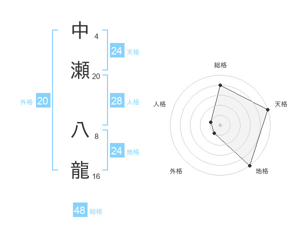 中瀬 八龍さんの天格は24画の5点!