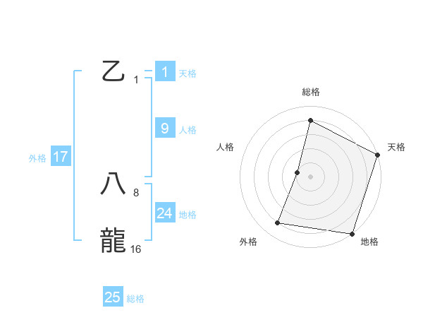 乙 八龍さんの総格は25画の4点!