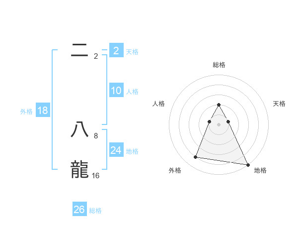 二 八龍さんの総格は26画の2点!
