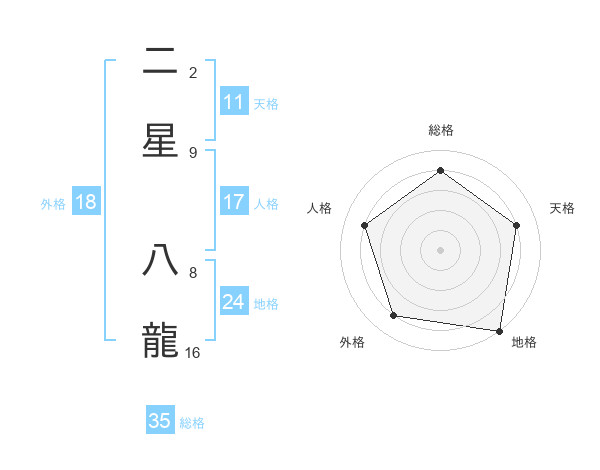 二星 八龍さんの総格は35画の4点!