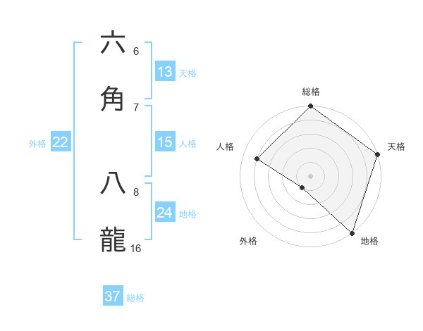 六角 八龍さんの総格は37画の5点!