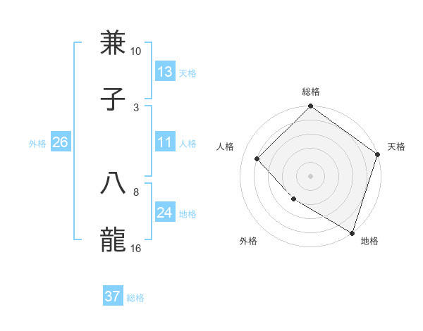兼子 八龍さんの総格は37画の5点!