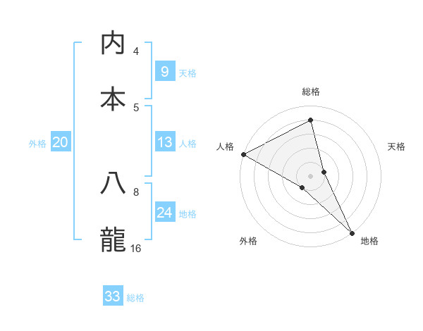内本 八龍さんの総格は33画の4点!