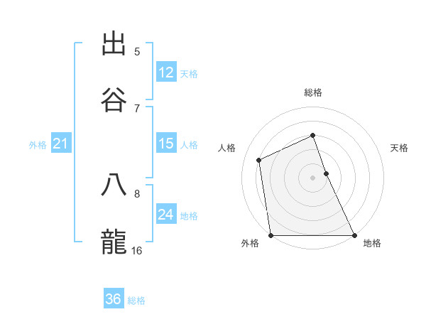 出谷 八龍さんの外格は21画の5点!