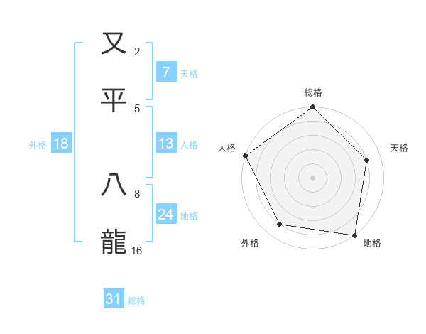 又平 八龍さんの総格は31画の5点!