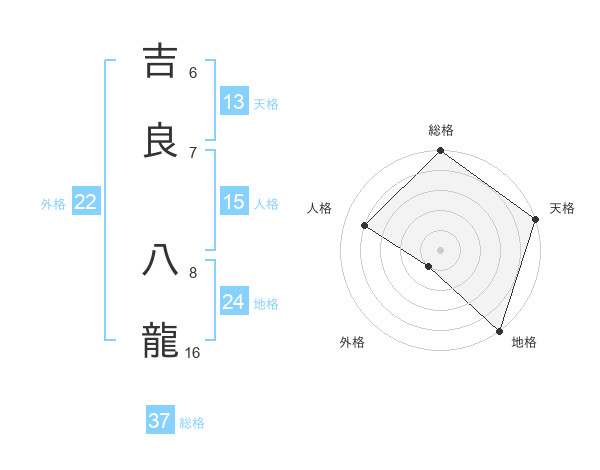 吉良 八龍さんの総格は37画の5点!