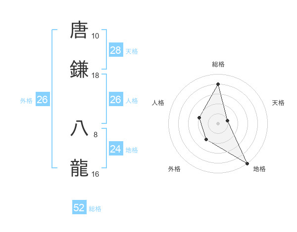 唐鎌 八龍さんを姓名の画数から五運を鑑定