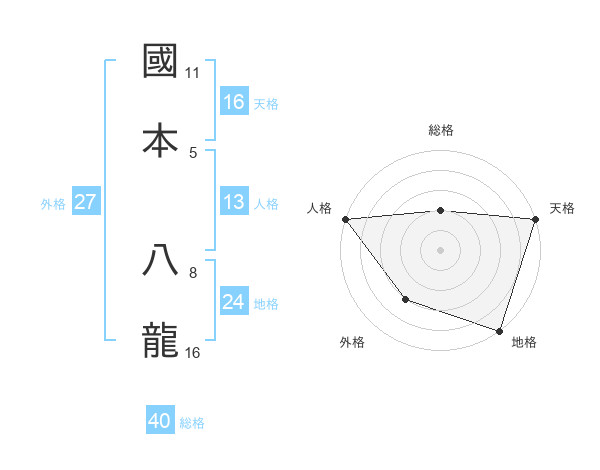 國本 八龍さんの外格は27画の3点!