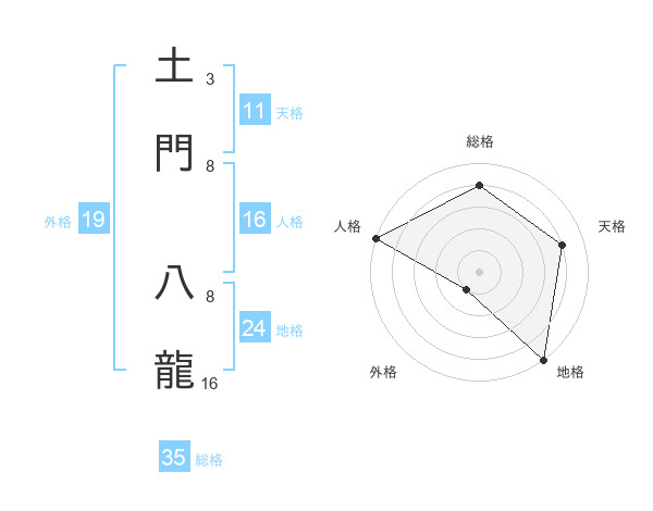 土門 八龍さんの総格は35画の4点!