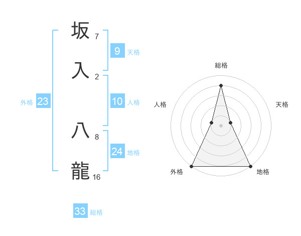 坂入 八龍さんの総格は33画の4点!