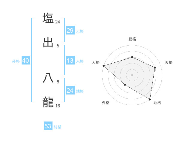 塩出 八龍さんの総格は53画の3点!