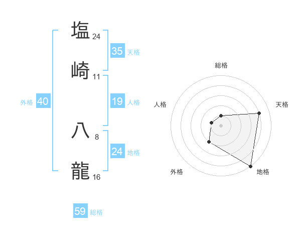 塩崎 八龍さんを姓名の画数から五運を鑑定