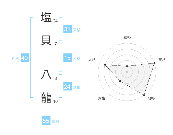 塩貝 八龍さんを姓名の画数から五運を鑑定