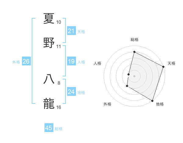 夏野 八龍さんを姓名の画数から五運を鑑定
