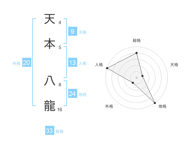 天本 八龍さんの総格は33画の4点!