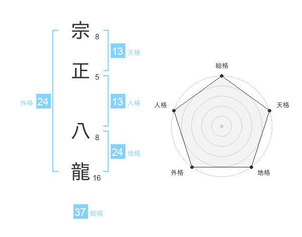 宗正 八龍さんを姓名の画数から五運を鑑定