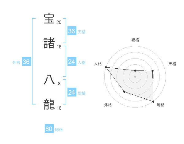 宝諸 八龍さんを姓名の画数から五運を鑑定