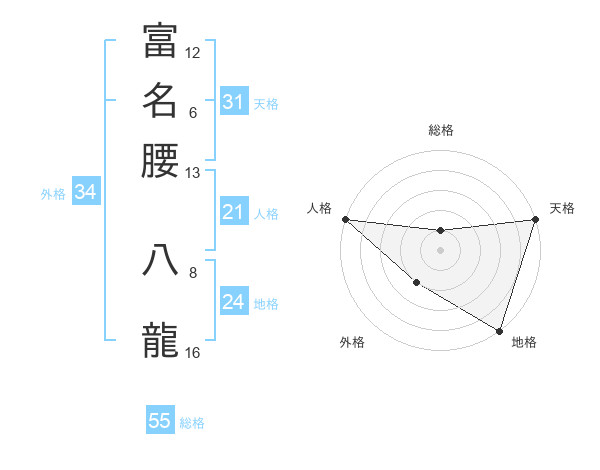 富名腰 八龍さんの総格は55画の1点!