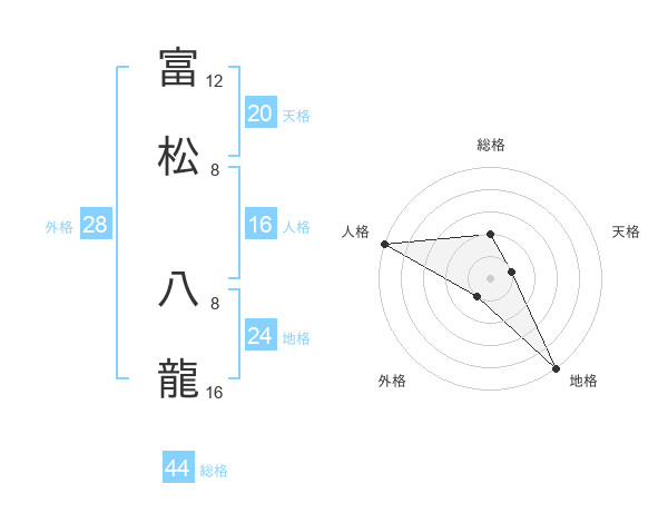 富松 八龍さんの総格は44画の2点!