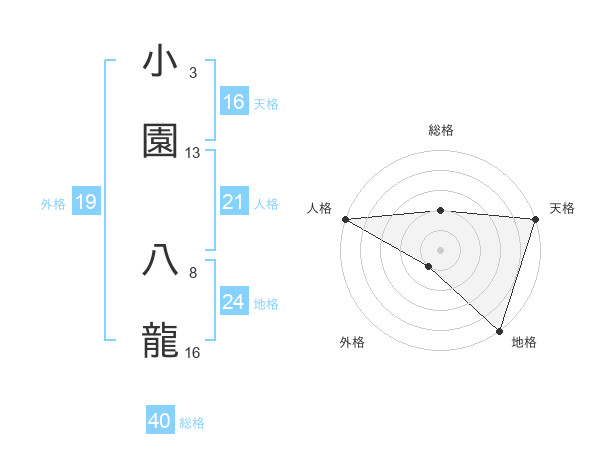 小園 八龍さんの天格は16画の5点!