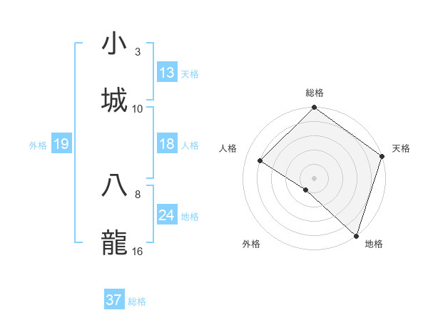 小城 八龍さんの総格は37画の5点!