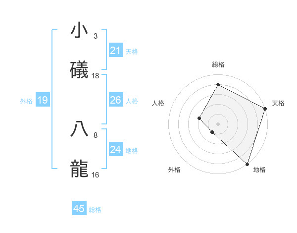 小礒 八龍さんを姓名の画数から五運を鑑定