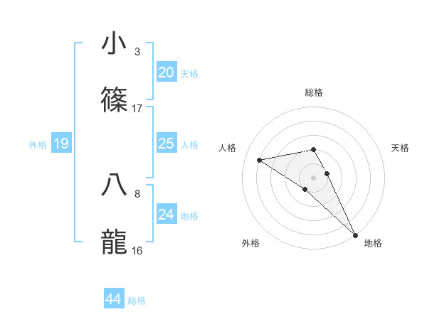 小篠 八龍さんを姓名の画数から五運を鑑定