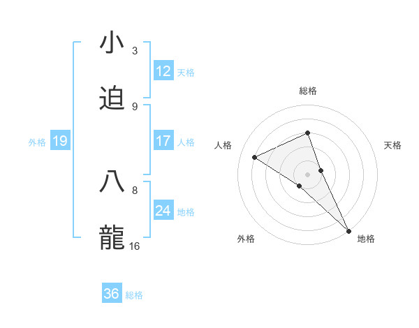 小迫 八龍さんの地格は24画の5点!