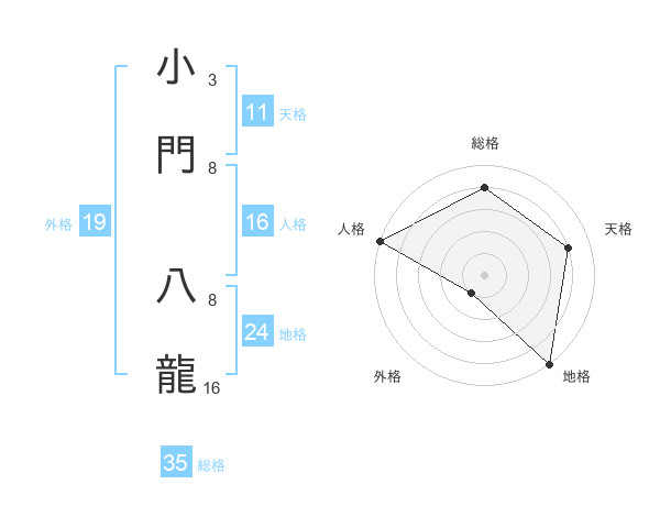 小門 八龍さんの総格は35画の4点!