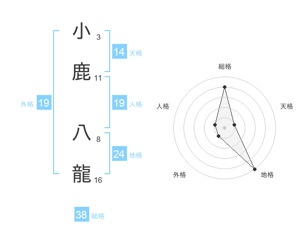 小鹿 八龍さんの総格は38画の4点!