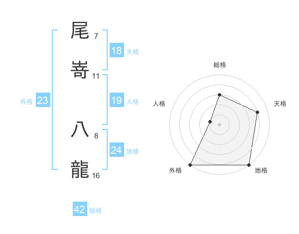 尾嵜 八龍さんを姓名の画数から五運を鑑定