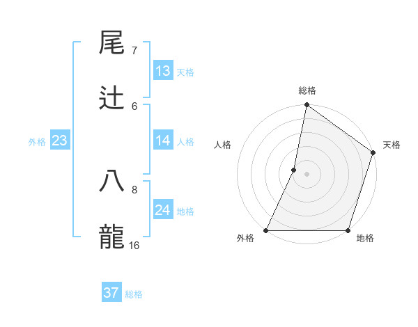 尾辻 八龍さんの総格は37画の5点!