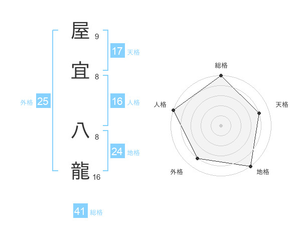 屋宜 八龍さんの総格は41画の5点!