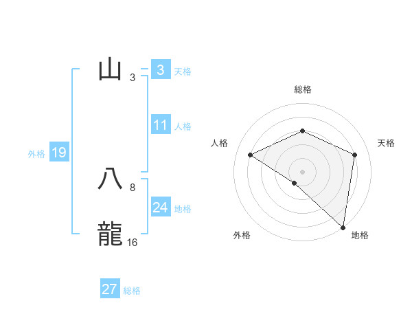 山 八龍さんの総格は27画の3点!