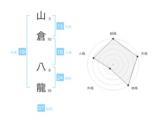 山倉 八龍さんの総格は37画の5点!