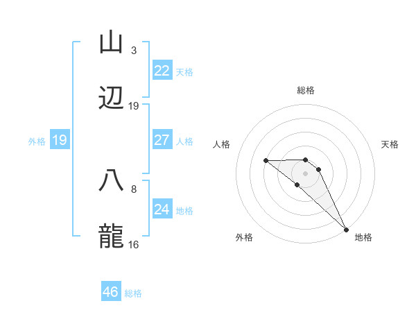 山辺 八龍さんの外格は19画の1点!