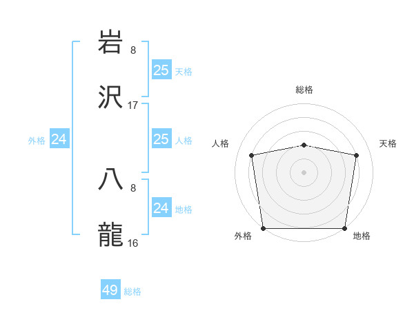 岩沢 八龍さんの総格は49画の2点!