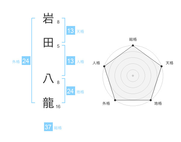 岩田 八龍さんの総格は37画の5点!