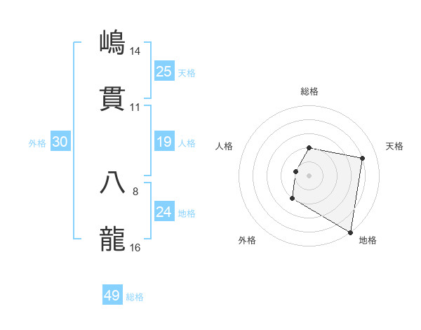 嶋貫 八龍さんの総格は49画の2点!