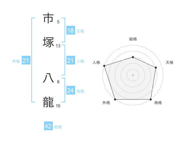 市塚 八龍さんの外格は21画の5点!